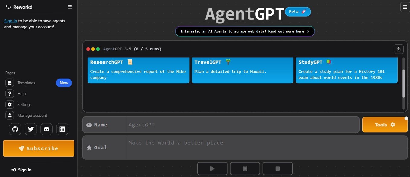 AgentGPT is an advanced AI-driven platform that allows users to deploy autonomous AI agents capable of performing complex tasks with minimal human input. Unlike traditional chatbots or assistants, AgentGPT enables AI agents to self-improve, break down tasks into sub-tasks, and execute workflows across various industries.