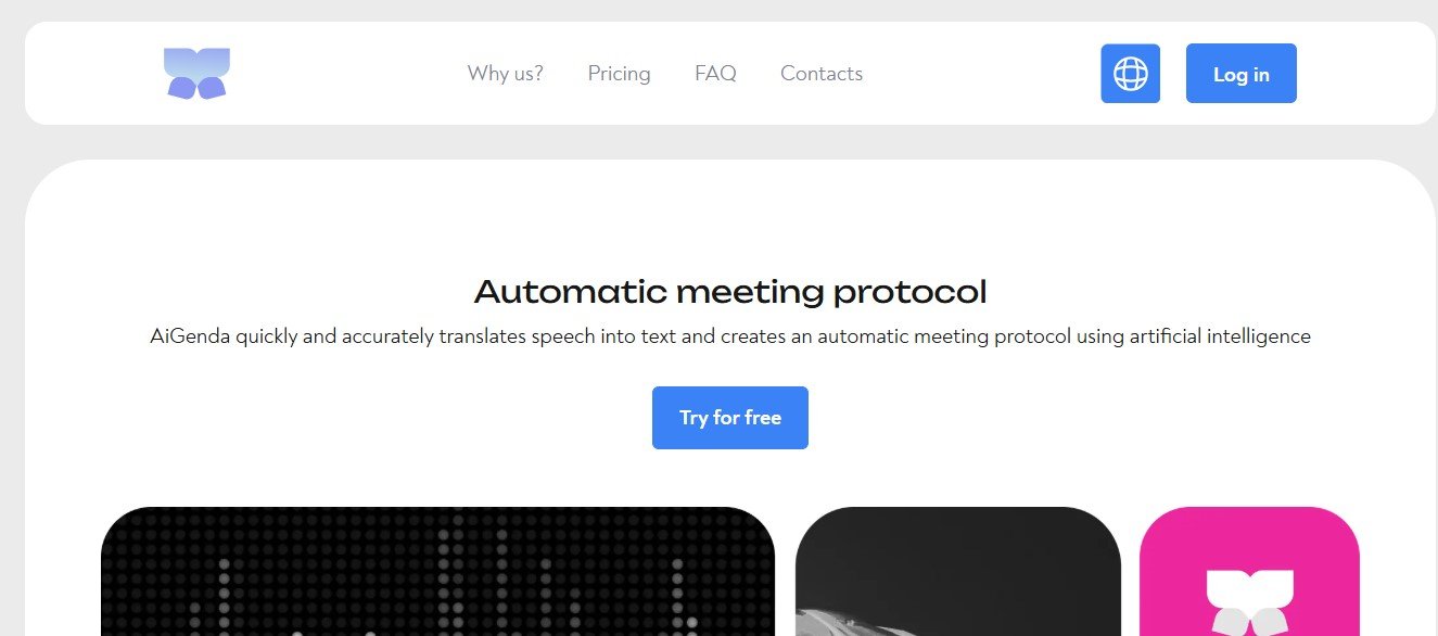 AiGenda is an AI-driven service that automates meeting protocols, offering high-quality speech-to-text transcription and actionable summaries. It integrates seamlessly with platforms like Google Meet, Zoom, and Telegram, making it easy to record and manage meeting outputs across various environments.