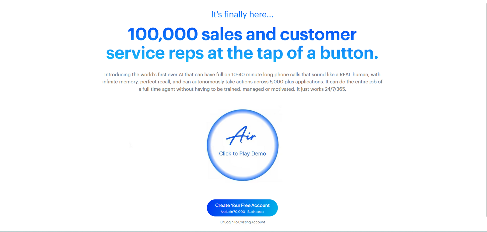 Air AI is a revolutionary tool for automating sales and customer service interactions. Its advanced AI capabilities, extensive integration options, and 24/7 availability make it a valuable asset for businesses looking to enhance productivity and customer satisfaction.