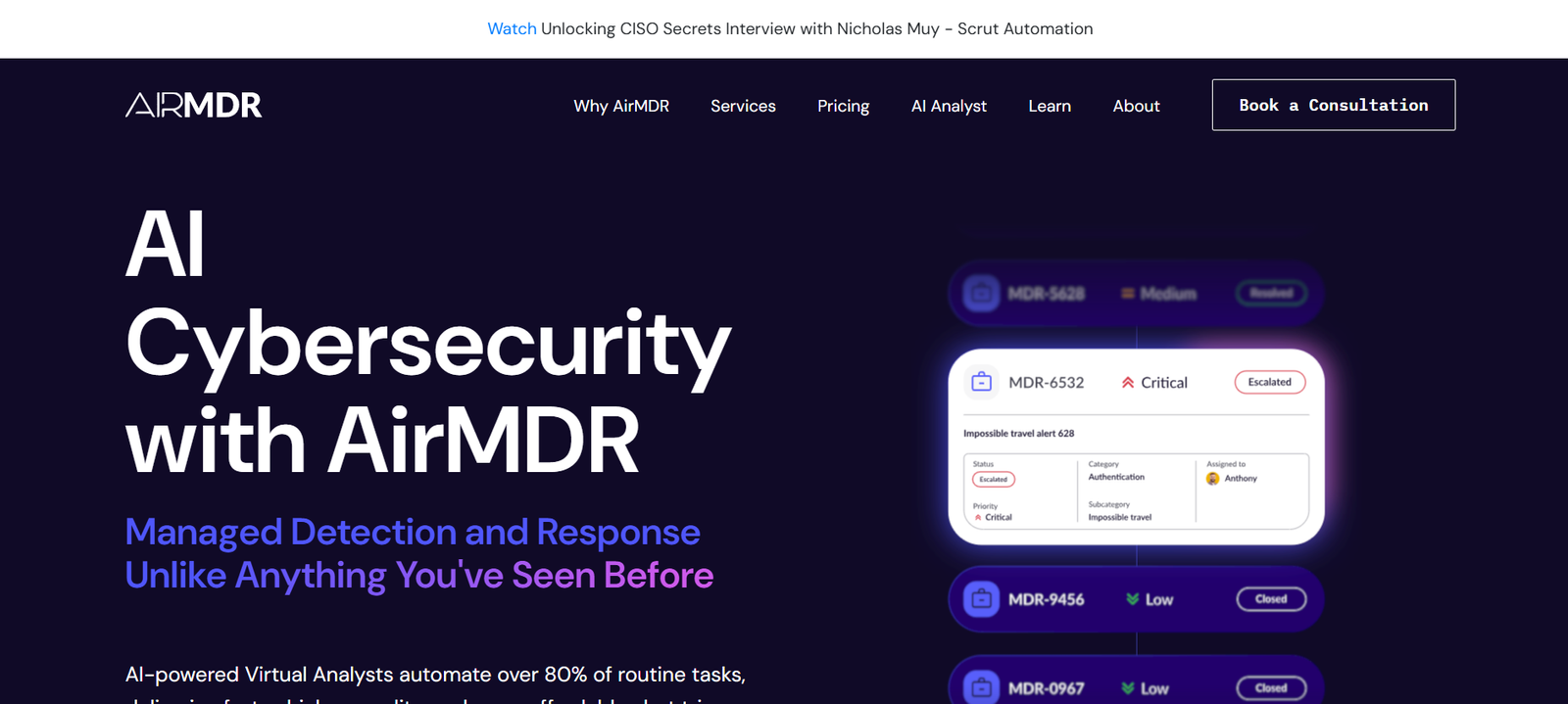 As cyber threats grow in volume and sophistication, AirMDR offers a powerful and efficient solution for proactive threat detection and response. Its combination of AI automation, expert human analysis, and broad system integration ensures that organizations can stay ahead of evolving risks without the overhead of building a large internal security team.