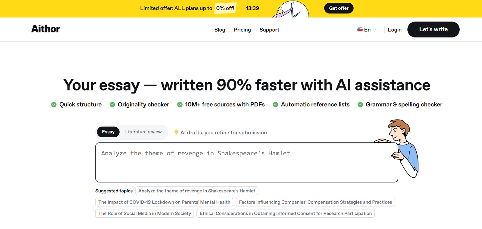Aithor.com offers a variety of features specifically designed for academic and research-oriented writing.