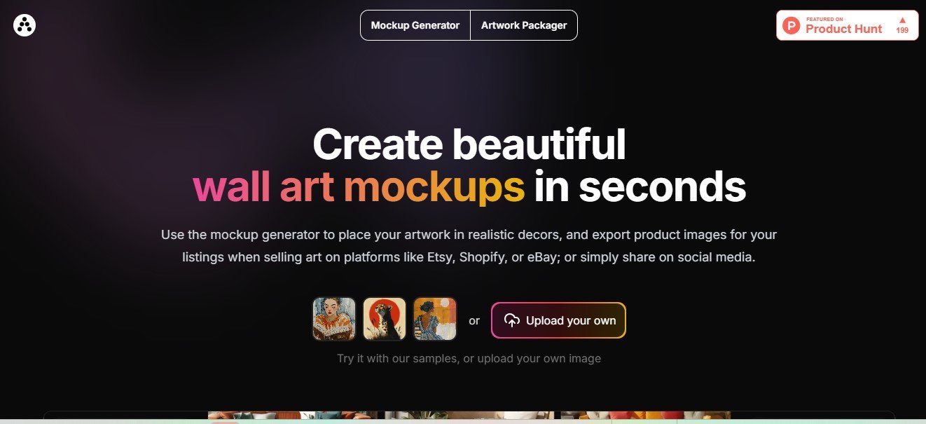 Artadum is a mockup generator tailored for artists and photographers. The platform allows
