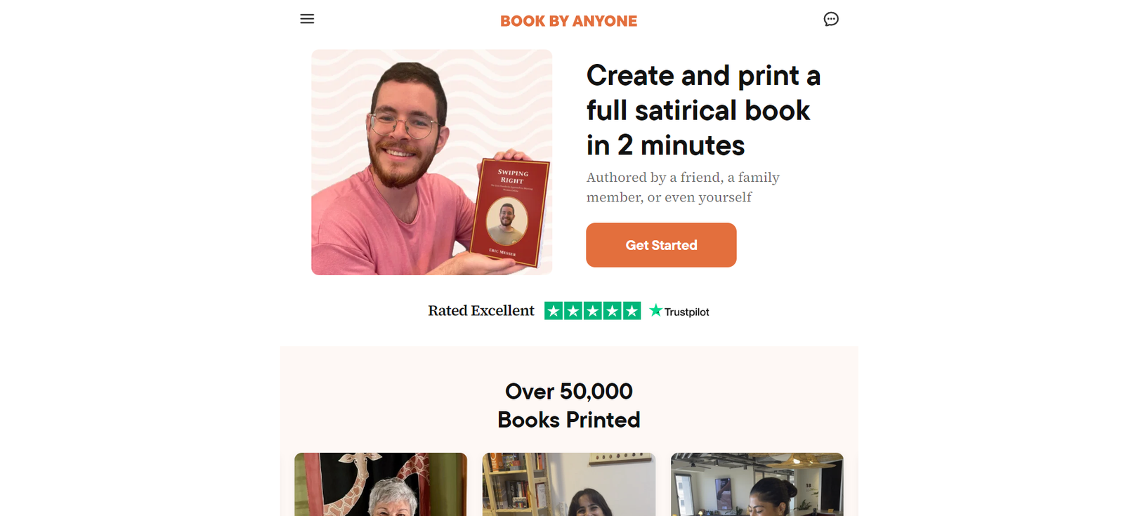 Book By Anyone is a unique AI-driven service that creates fully personalized, humorous books for gifting. Users provide details about the “author,” select book themes, and choose cover designs, after which the AI generates a 240-page satirical book filled with custom content. The printed book, available in paperback and hardcover, is ideal for memorable, lighthearted gifts.