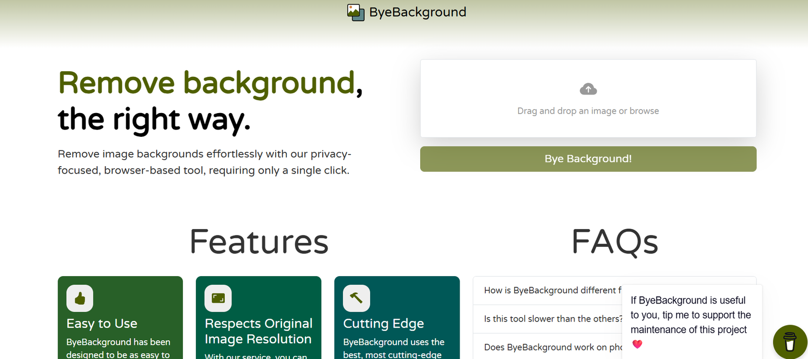 ByeBackground is a fast, efficient, and entirely free AI background remover that offers outstanding utility with no strings attached. While it doesn’t include advanced editing or integration options, its core functionality is reliable and professional-grade.