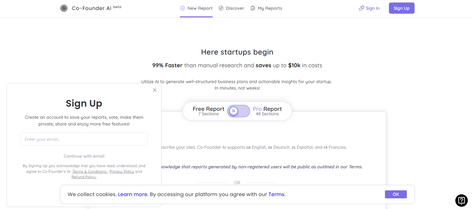 - Free Plan – Basic startup idea validation and AI-powered market insights