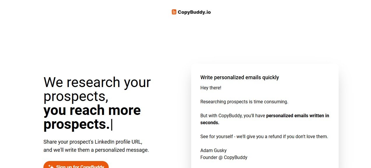 o Focuses on hyper-personalized cold emails, whereas CopyBuddy.io offers broader