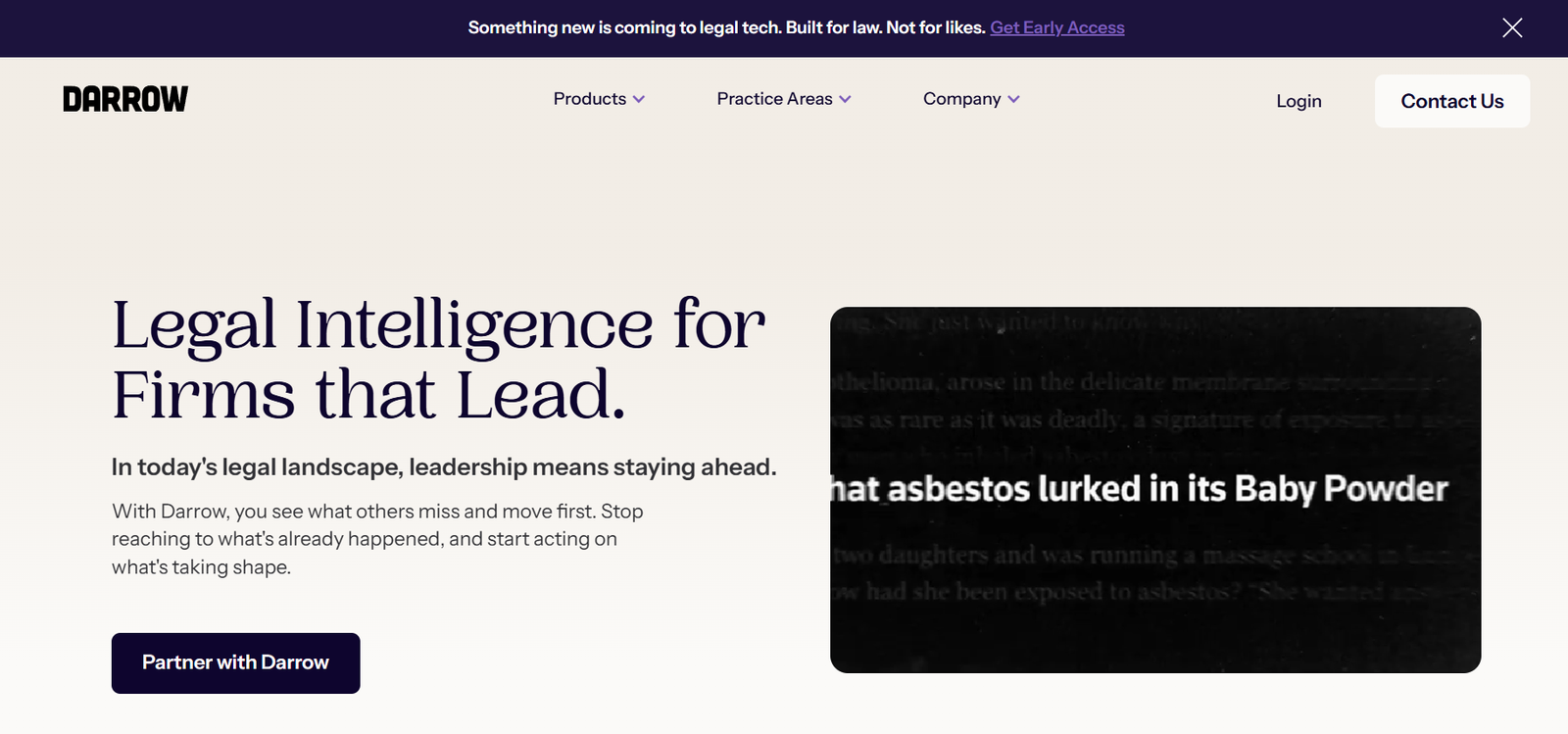 This makes Darrow particularly suitable for plaintiff-side litigation firms and legal funders looking to identify untapped legal opportunities.
