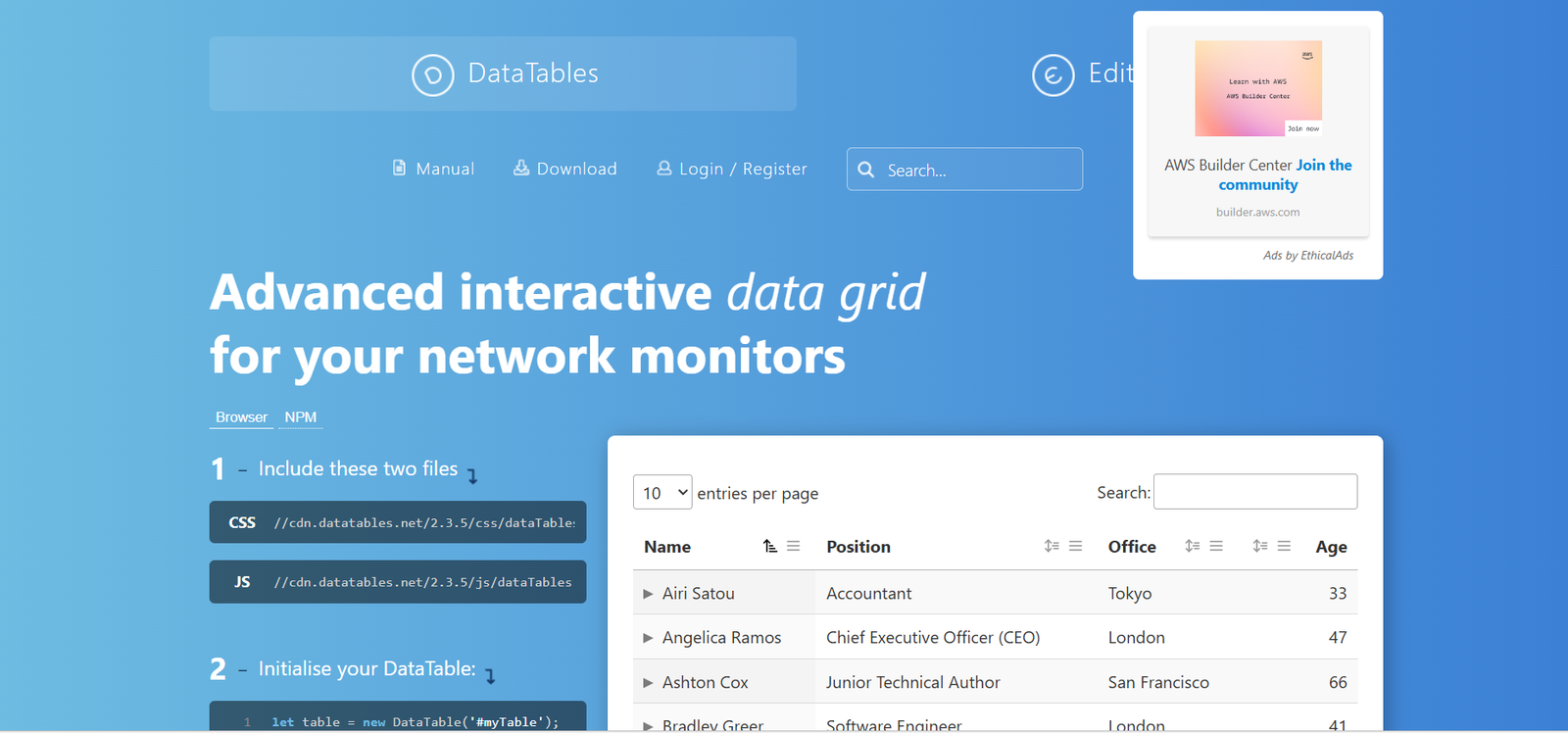 Thousands of public sector websites and internal systems rely on DataTables for its reliability and speed.