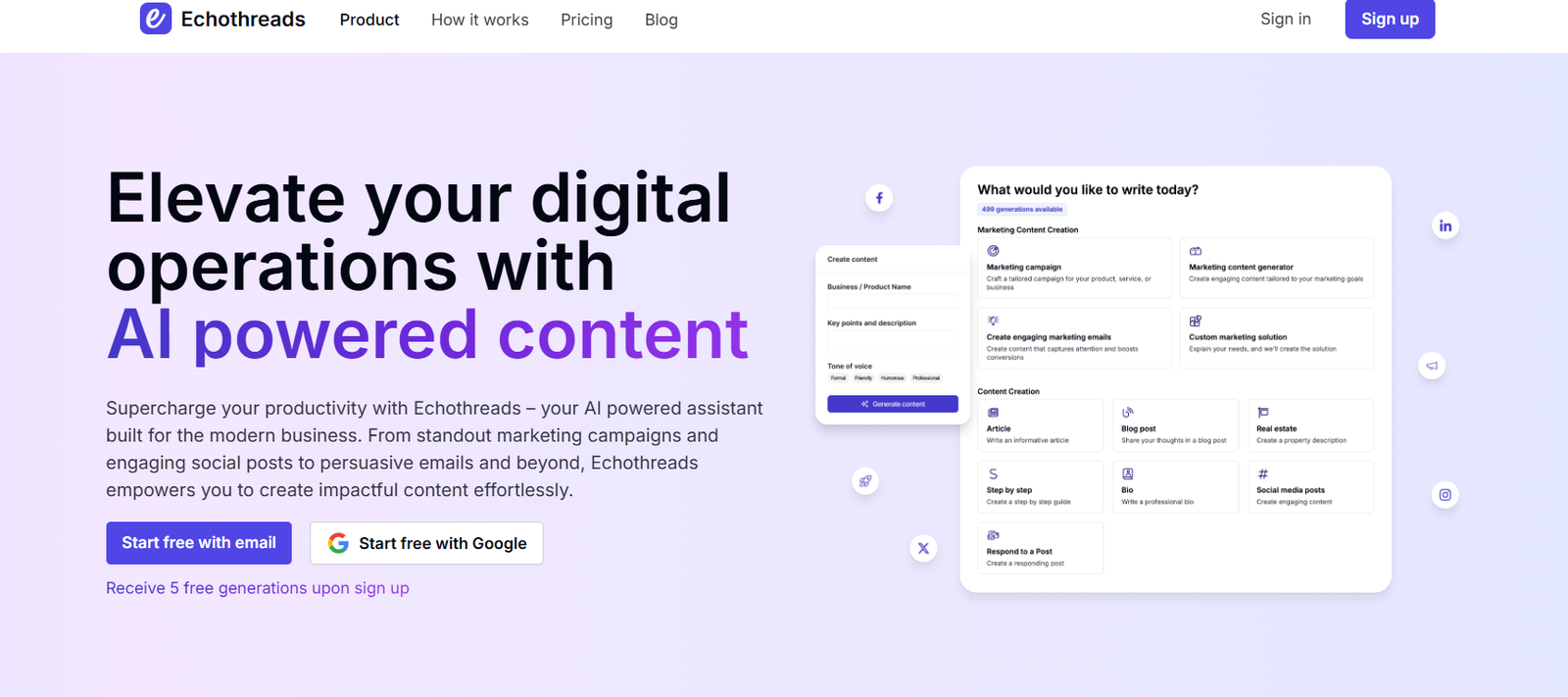 With its clean interface and simple workflow, EchoThreads automates the hardest part of social media writing—getting started. It allows users to input a topic, idea, or URL, and the AI will generate a thread complete with hooks, transitions, and closing calls-to-action.