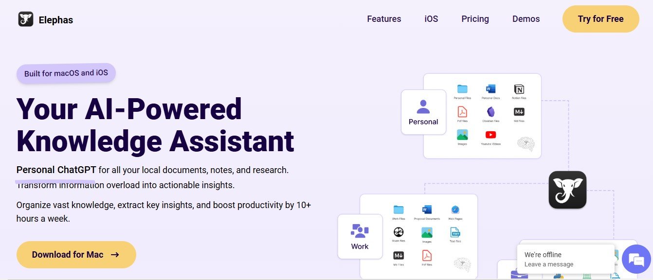 Elephas is an AI-driven knowledge assistant designed to organize and transform your scattered