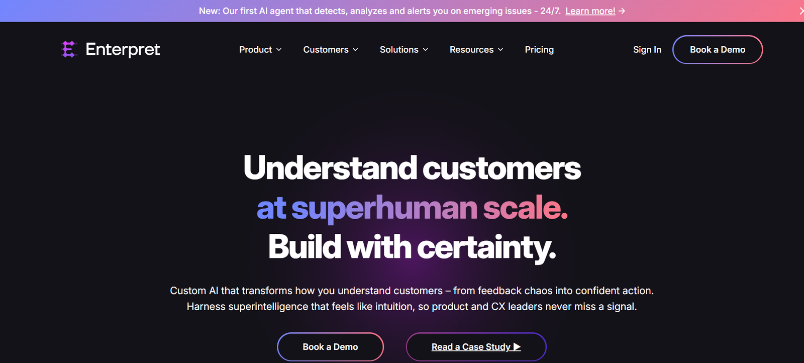 Enterpret is a best-in-class AI voice of customer platform that enables organizations to truly listen, learn, and act on customer feedback. With tailored AI models, scalable integrations, and deep analytics capabilities, it gives product teams the insight they need to build with confidence and clarity.