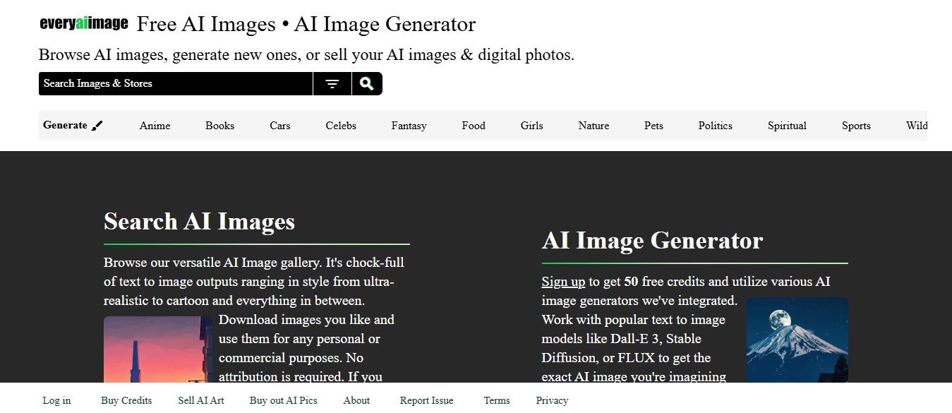 Deep Dream Generator creates surreal AI art, while EveryAI Image balances realistic and creative AI image production.