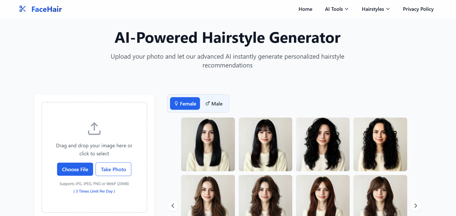 Using FaceHair AI is simple and intuitive. Users begin by visiting the website and uploading a clear photo of their face. The AI analyzes facial features and head shape, then lets you browse through a library of hair and beard styles that can be applied with a click.