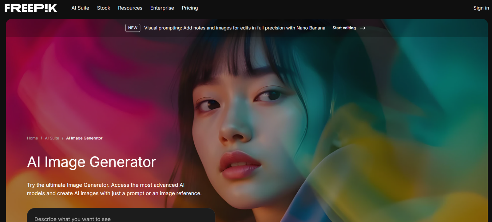 Freepik includes AI tools that help users generate images and enhance their design process: