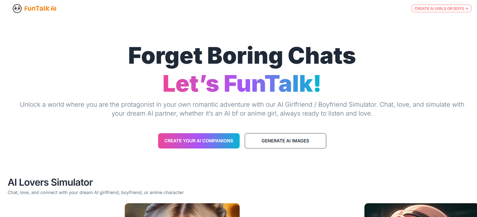 FunTalk AI offers a friend-like chat experience. Whether users want motivation, companionship, or just someone to talk to, the platform provides responsive and lifelike interactions.