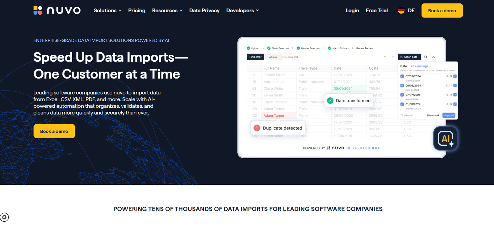 GetNuvo.com is a lightweight, powerful CSV import tool that helps SaaS businesses onboard users faster and more effectively. With AI-driven field mapping, real-time validation, and a customizable UI, it transforms what is typically a painful and error-prone process into a smooth, delightful user experience.