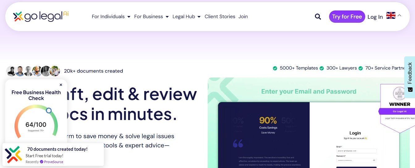 • Go Legal AI vs. Other Legal Tech Platforms: Distinguishes itself with a comprehensive suite of AI-powered tools, an extensive template library, and integrated access to legal professionals, providing a holistic solution for legal document management.