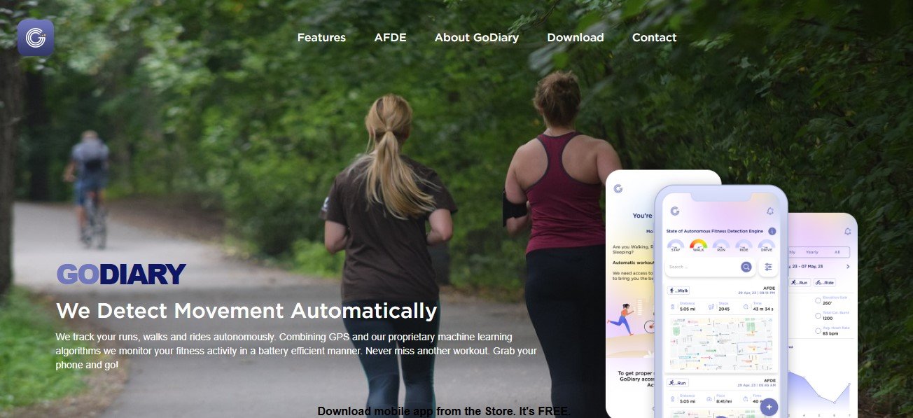 GoDiary offers autonomous fitness tracking using GPS and AI, providing accurate activity detection,