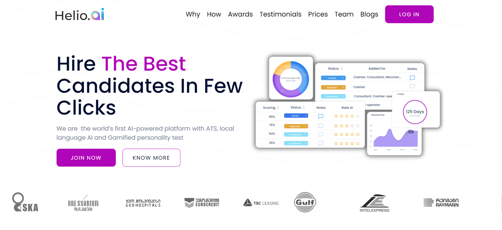 Streamline your hiring with Helio.AI. Automated resume screening, gamified personality tests, and data-driven insights for efficient recruitment.