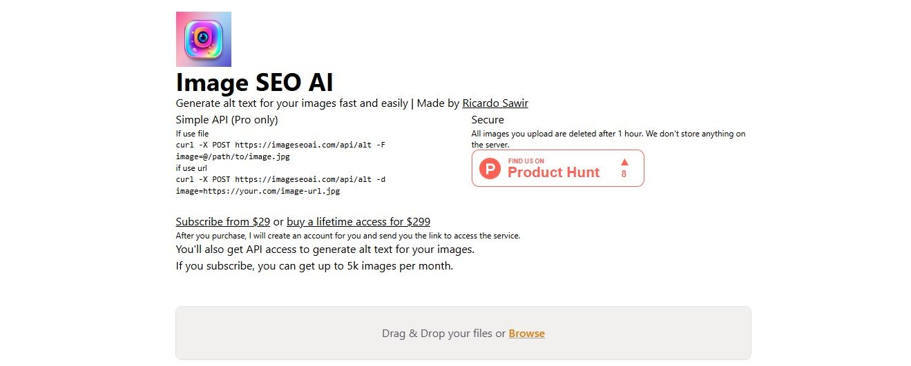 ImageSEOAI is an AI-powered tool that simplifies the process of generating alt text for images. Designed to enhance website accessibility and improve SEO, it provides fast, accurate, and contextually relevant alt text for up to 5,000 images per month.