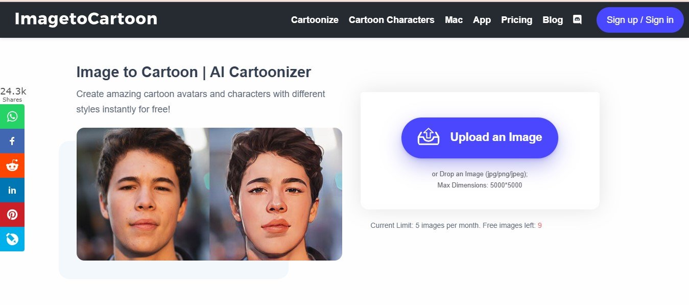 - Upload Your Photo:Visit the ImageToCartoon website or open the app, and upload a clear image of yourself.
