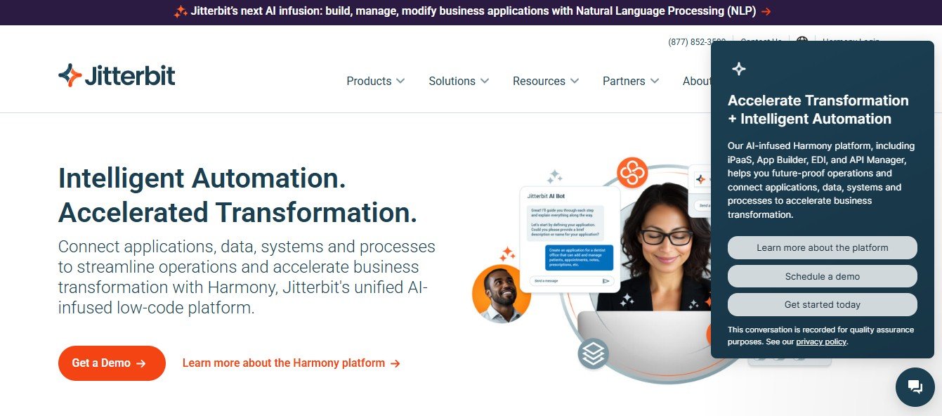 Jitterbit is an AI-driven integration platform (iPaaS) that enables businesses to connect applications, automate workflows, and streamline data exchange between systems. With its low-code interface, enterprises can integrate cloud, on-premise, and hybrid environments, ensuring seamless connectivity across departments.