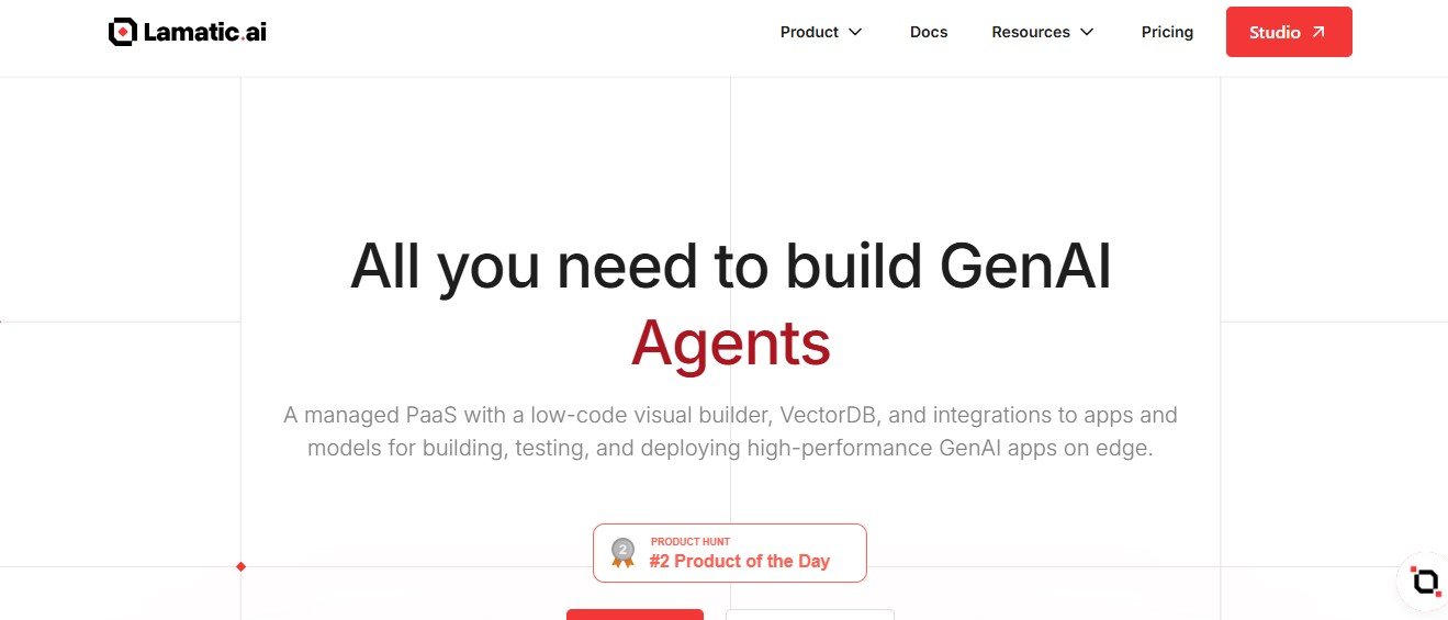 Lamatic AI is a managed Platform-as-a-Service (PaaS) that simplifies the development, integration, and deployment of Generative AI (GenAI) applications. With a low-code interface, built-in vector databases, and seamless integration with AI models and tools, Lamatic AI empowers teams to build high-performance GenAI applications. Its edge deployment capabilities and automated workflows enable rapid scalability while maintaining reliability.