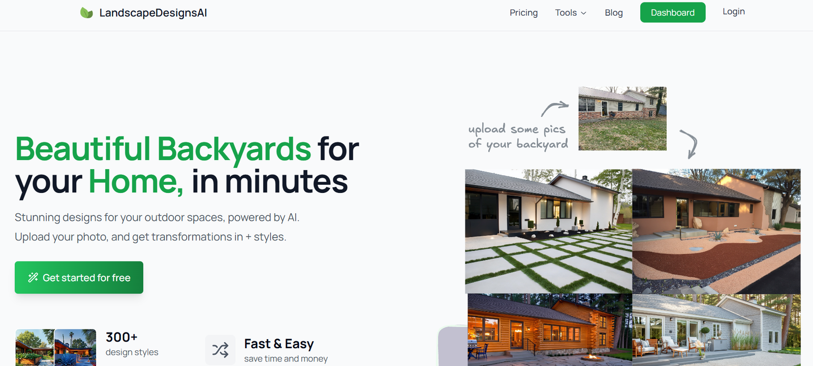 LandscapeDesignsAI is a user-friendly, web-based platform that helps homeowners and landscape professionals create beautiful outdoor designs quickly. You upload a photo of your space, then let the AI generate multiple versions in different styles—all ready in just minutes.