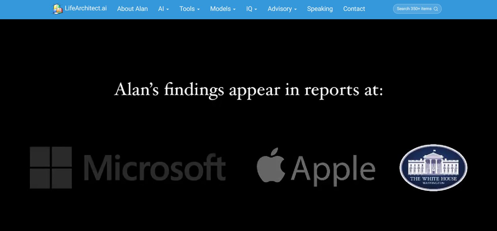 LifeArchitect.ai is a research-driven platform created by Dr. Alan D. Thompson, offering in-depth analysis, insights, and educational tools focused on artificial intelligence and human potential. Positioned at the intersection of AI, consciousness, and future-focused innovation, LifeArchitect.ai aims to guide leaders, educators, and visionaries through the accelerating world of generative AI and superintelligence.