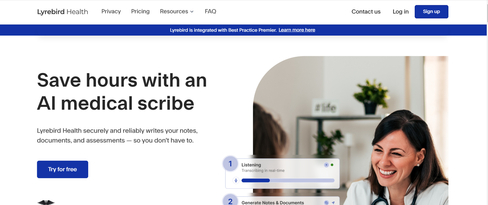 Lyrebird Health streamlines medical documentation with AI-generated notes, real-time transcription, and customizable templates. Enhance your workflow and save time. Explore features, benefits, and pricing now!