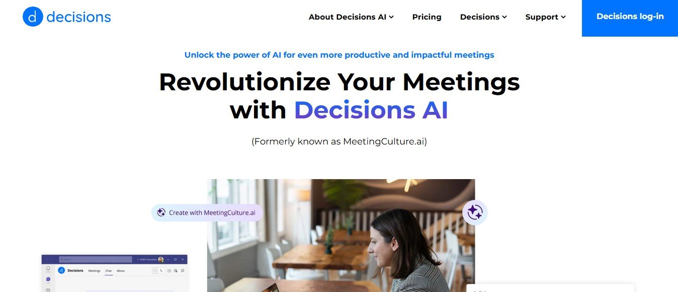 management. MeetingCulture AI, part of the Decisions suite, empowers teams with AI-driven tools