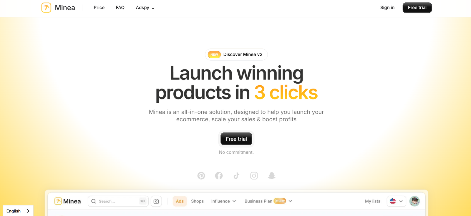 Minea is an all-in-one ad spy tool for e-commerce and dropshipping businesses, helping users track competitor ads across TikTok, Facebook, and more.