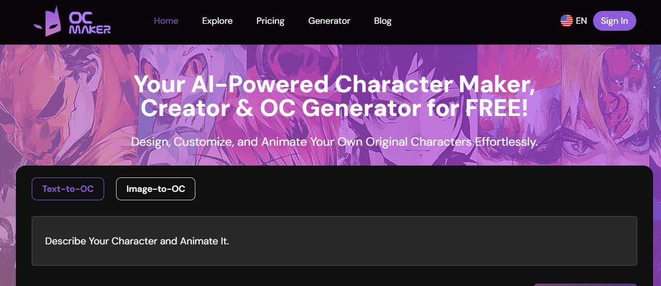 OC Maker is an AI-powered character creator that allows users to design and animate original characters (OCs) from text prompts. Users can describe their character’s appearance, personality, and style, and the AI generates customized visuals and animations. The platform offers multiple art styles, from anime to cartoon, making it ideal for storytellers, artists, and game developers.