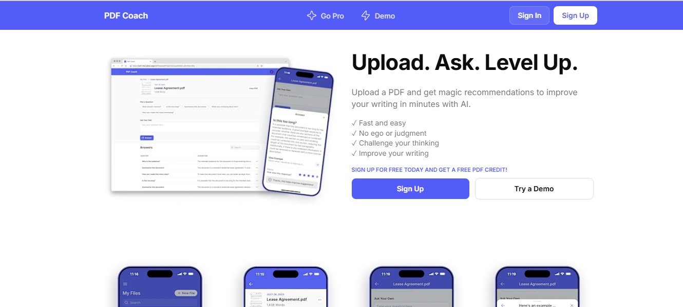 Designed for businesses, educators, and individuals, PDF Coach streamlines document management with AI-driven features, making PDF handling faster and more efficient.