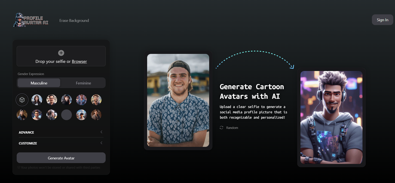 Creating your AI profile avatars with Profile Avatar involves a simple and streamlined process: