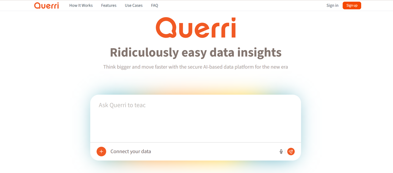 Sign Up and Connect Your Tools: Create an account at https://querri.ai and connect data sources such as Google Workspace, Notion, or Slack.