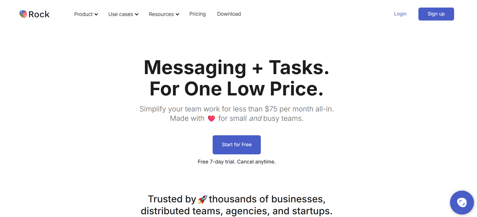 Even on the free plan, Rock offers unlimited messaging, tasks, and spaces, making it ideal for small teams or freelancers.