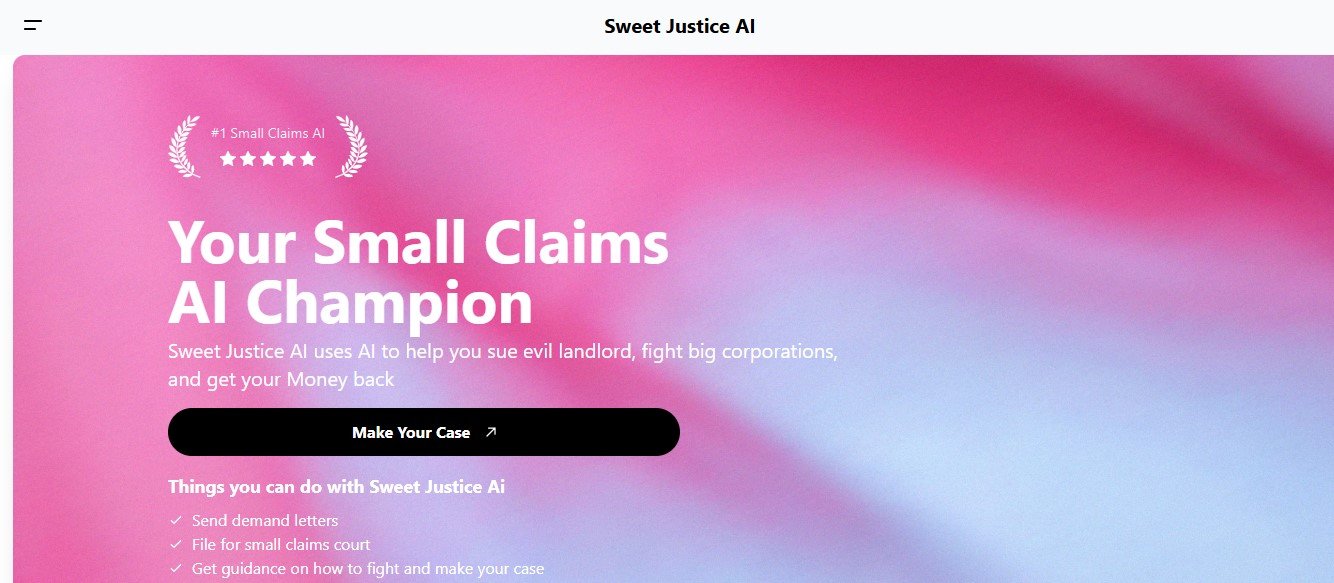 Sweet Justice AI is a user-friendly legal assistant designed to help individuals handle small claims cases. Whether you’re fighting for a security deposit, addressing an eviction notice, or seeking compensation from a corporation, Sweet Justice AI provides personalized assistance for every step of the process, from demand letters to court filing.