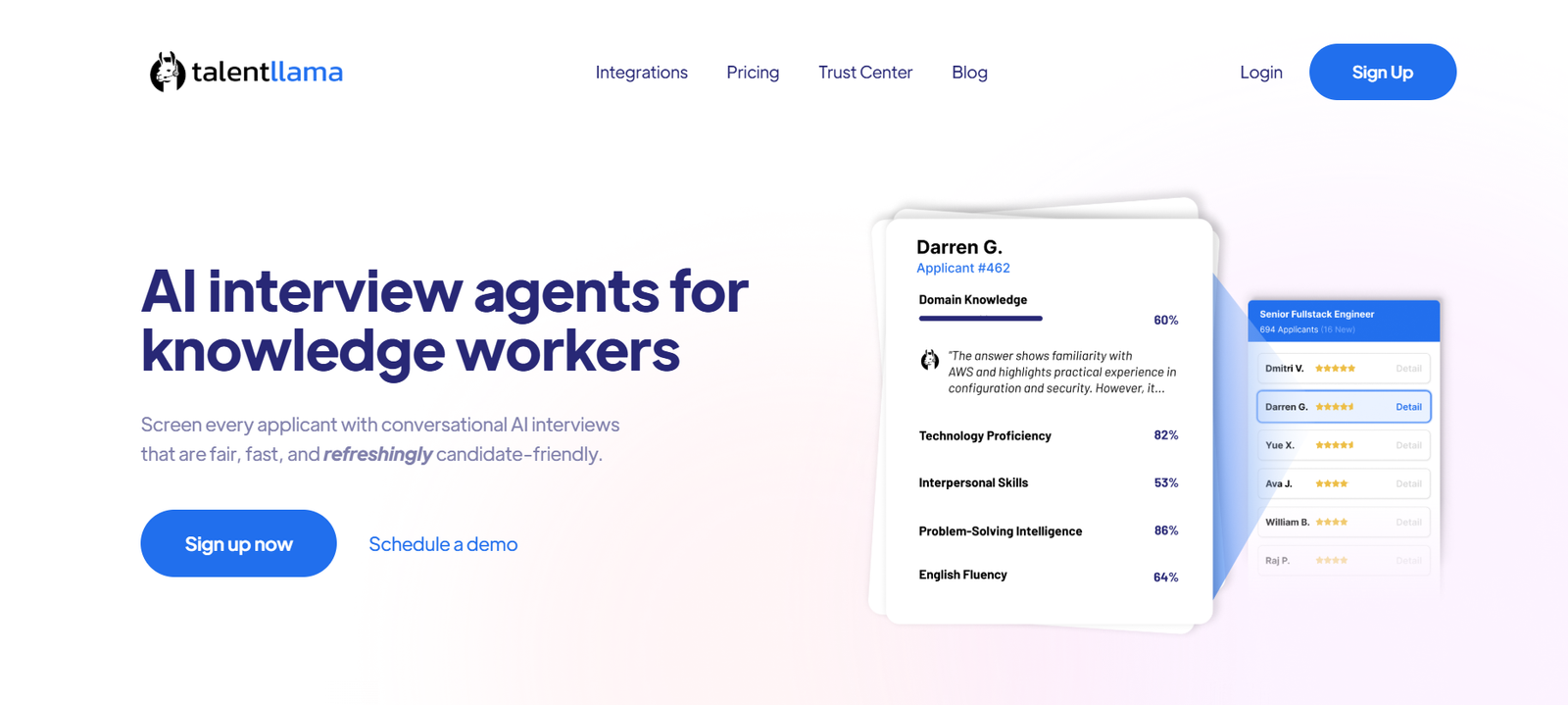 TalentLlama is a powerful solution for recruiters and hiring teams who want to speed up the screening process without compromising on quality. Its voice-based, AI-analyzed interviews offer a faster, fairer, and more scalable approach to evaluating candidates at the top of the funnel.