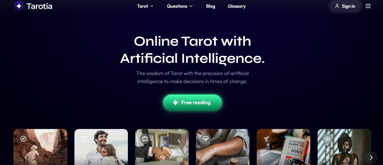 Tarotia: AI-Powered Tarot Readings for Personalized Guidance Tarot has been a timeless tool for introspection and guidance. Tarotia brings this ancient practice into the digital age by integrating tarot reading with artificial intelligence. Whether you are seeking clarity on relationships, career, or personal growth, Tarotia provides instant, accurate readings tailored to your unique questions.