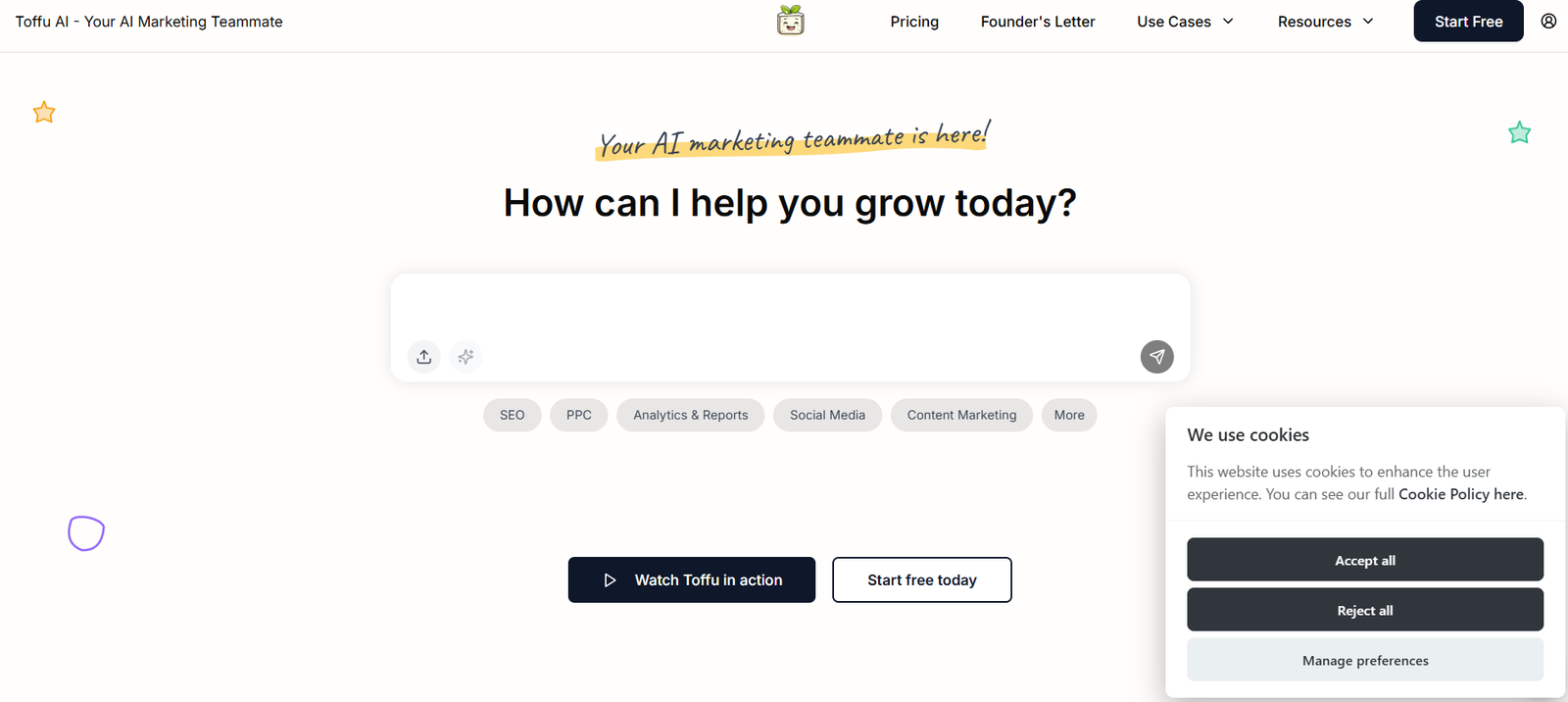 As of the latest information from the official website, Toffu AI currently offers early access to users via a waitlist. Pricing plans are not publicly displayed, which suggests that the platform is still refining its feature set and onboarding flow during a beta or invite-only phase.