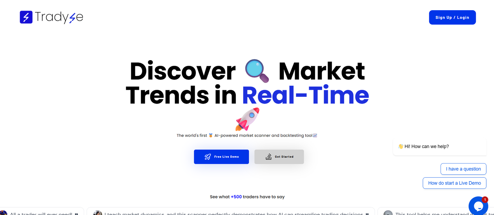 Tradyse provides a robust set of features built around its AI capabilities: