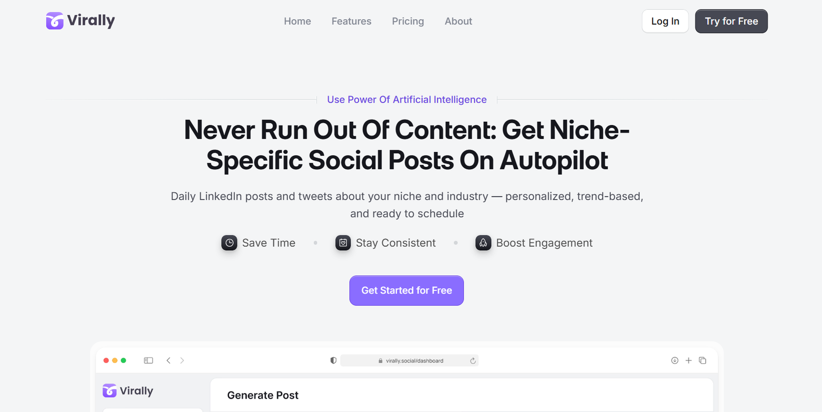 Whether you’re just starting out or managing multiple accounts, Virally gives you the insight and automation you need to stand out in crowded social feeds.