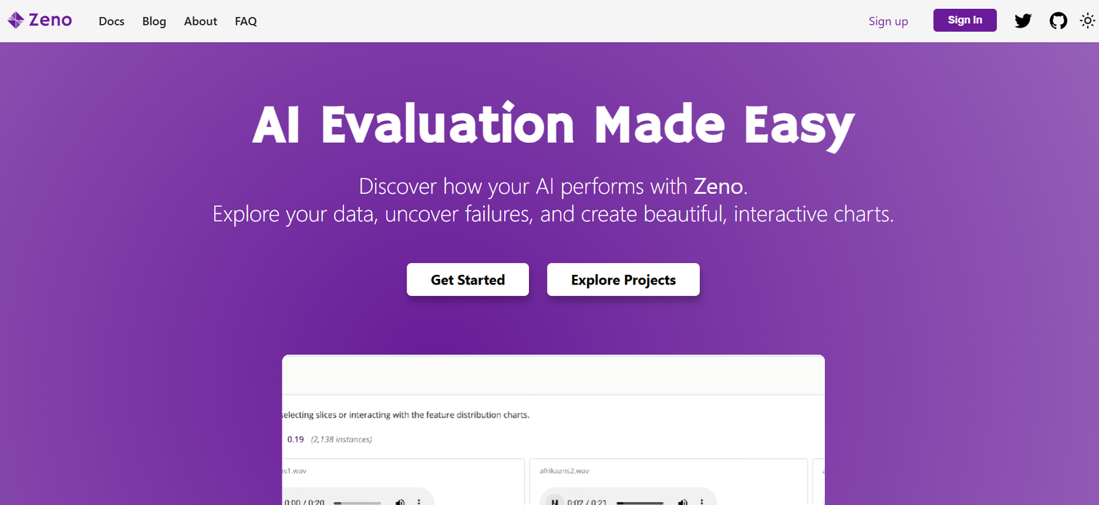 Zeno enables collaborative debugging, testing, and optimization of AI systems through a web-based interface that integrates with existing workflows.